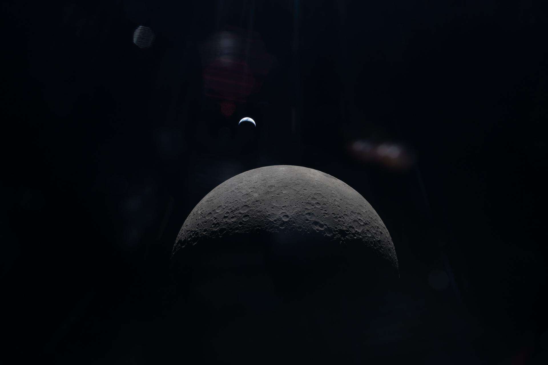 Detalles asombrosos de la superficie lunar y la nave Orion